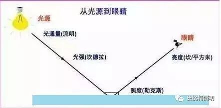 ▲简而言之,就是灯泡发出的光的数量(光通量)在某一方向以一定的强度(光强)入射到某一表面,此时可测得这一表面的照度。不管这一表面是黑色的还是白色的,是木头的还是石材的,照度值都是一样的。该表面会反射光线,可能是镜面反射,更可能的是漫反射,往空间中很多方向都有光的反射。当我们站在某一位置观察受照面的时候,我们就看到了这个表面的明亮程度(亮度)。